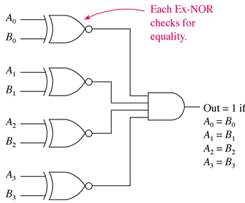 - The Exclusive-NOR (Equality gate) is used to perform the comparison.