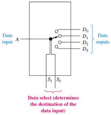 - A demultiplexer (data distributor) will select a specific output